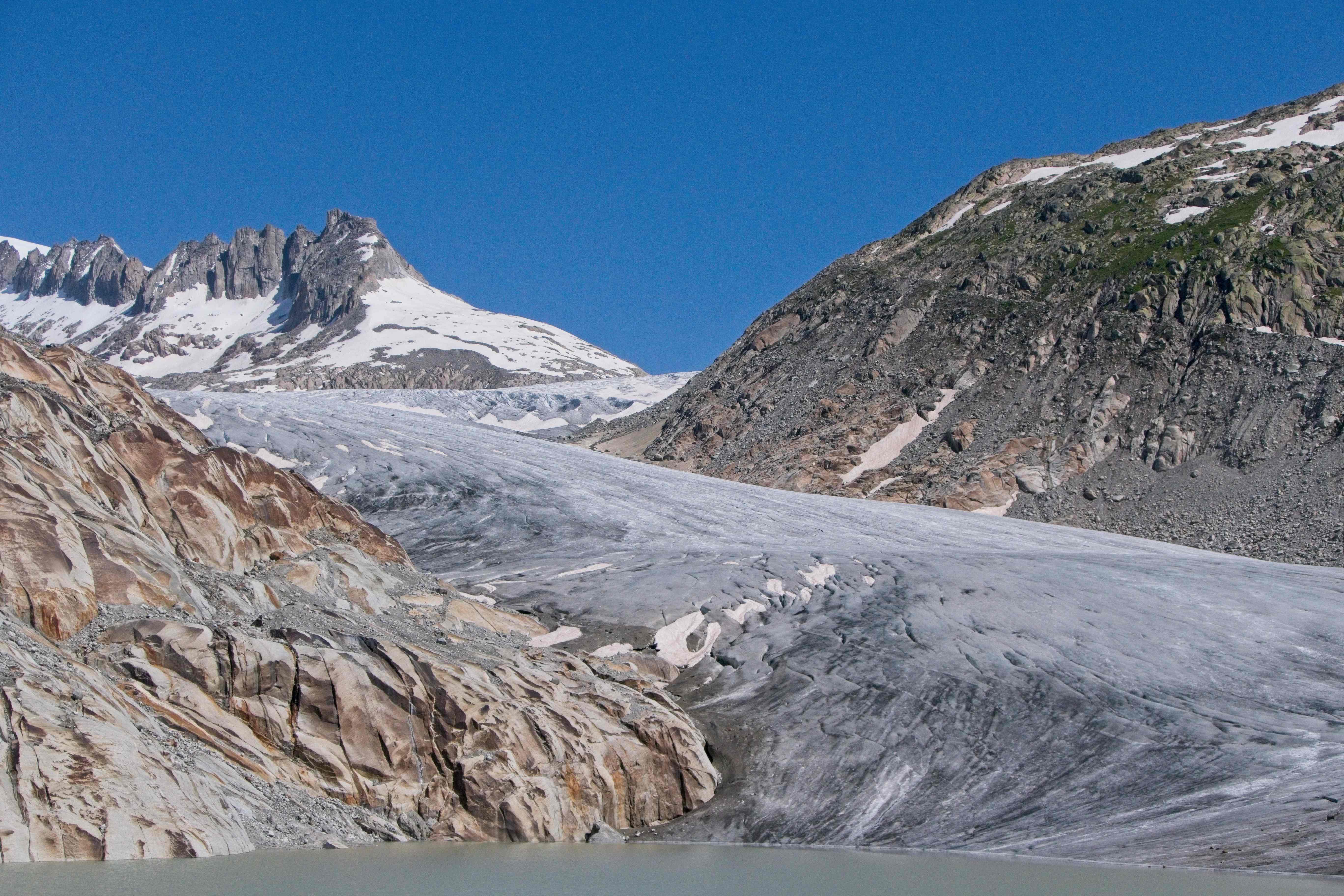 Bei einem Zwischenhalt statteten wir dem Rohnengletscher einen Besuch ab. Der Rückgang des Eises im Vergleich zu Vorjahren war erschreckend. Während circa einer Viertelstunde kann man dem Gletscherlehrpfad nach zum Eingang der Eisgrotte spazieren. Die Eisgrotte und der Eistunnel wird seit mehr als 170 Jahren jedes Jahr neu ins Eis des Gletschers gehauen.