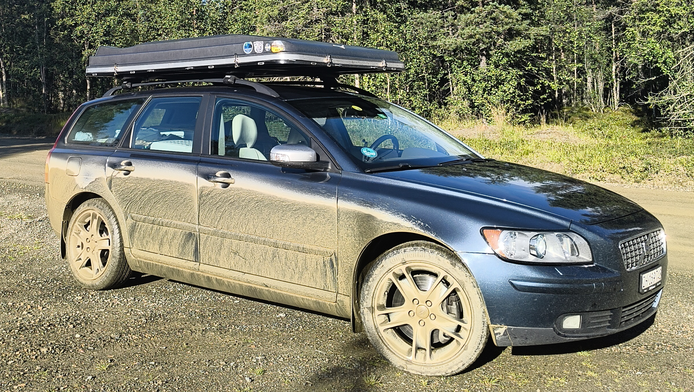 Auf unserer Fahrt kamen uns auf einmal nur noch Autos mit extrem verdreckten Heck entgegen. Langsam beschlich uns die Vorahnung, dass die Qualität der Strasse vielleicht dafür verantwortlich sein könnte. Plötzlich war die Strasse nicht mehr asphaltiert, sondern glich einer Schotterpiste mit wenig Schotter, vielen Schlaglöchern und einer guten Prise Schlamm. Natürlich meisterte der Volvo diese Strecke mit Bravour, auch wenn man anmerken muss, dass er doch an seine Grenzen gekommen ist.