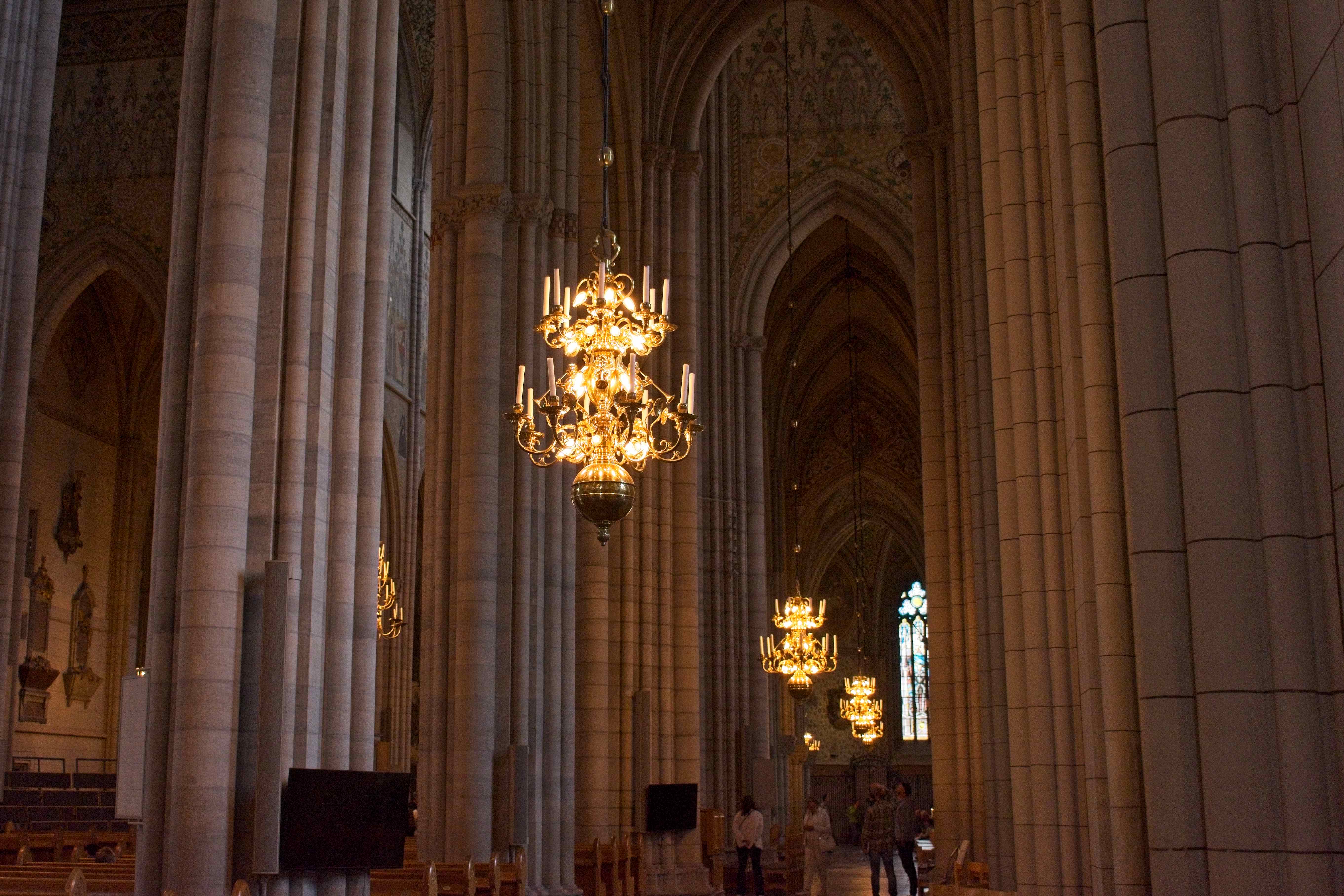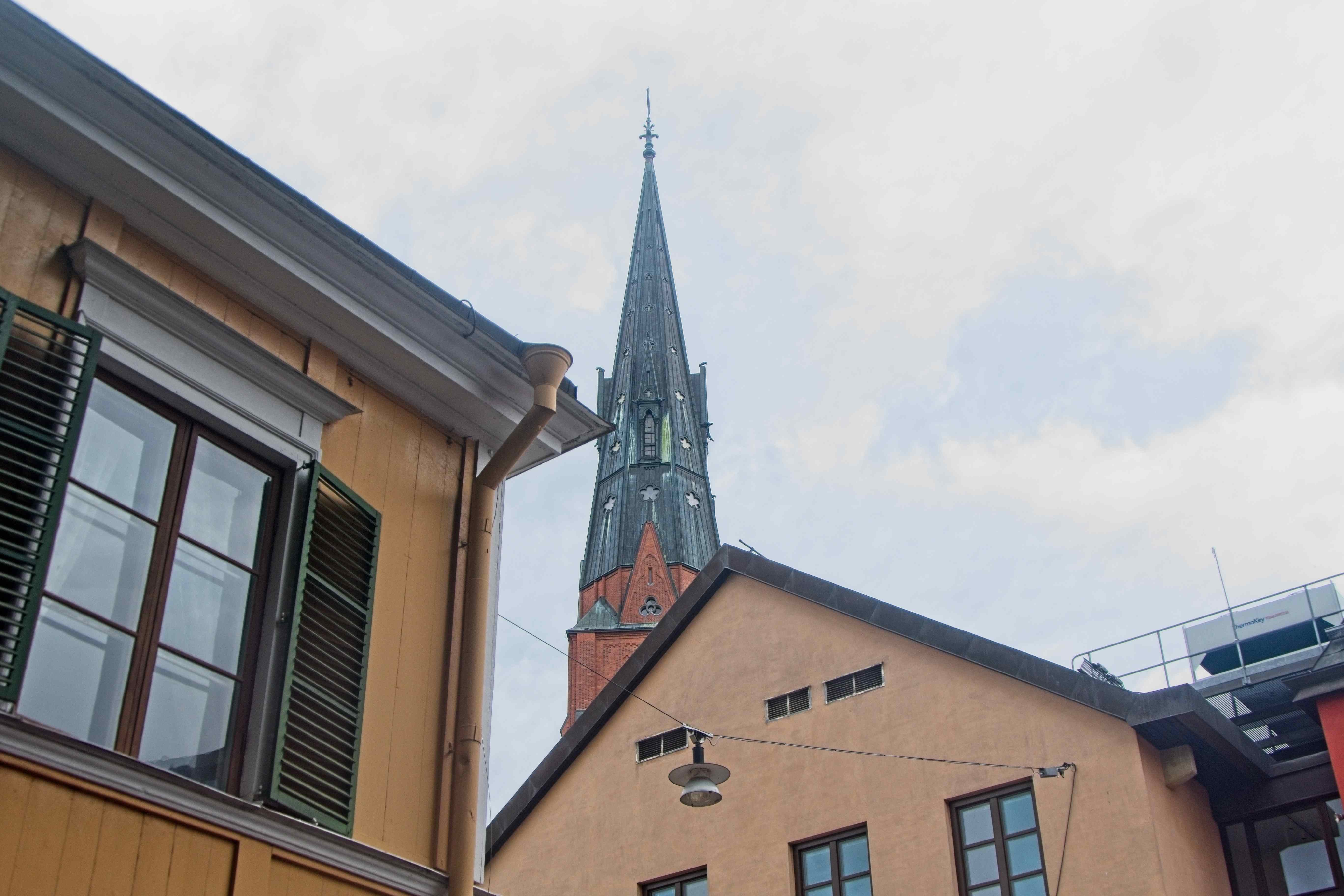 Unweit vom Uni-Gebäude liegt der Dom von Uppsala. Eriksdom ist das höchste Kirchengebäude von Skandinavien. Laut dem angeschlagenen Zettel an der Tür hätte der Gottesdienst fertig sein müssen. Beim Hereinkommen klang aber immernoch Orgelmusik. Kurzerhand haben wir uns leise hingesetzt und noch dem Ausgangsspiel des Gottesdienst gelauscht.