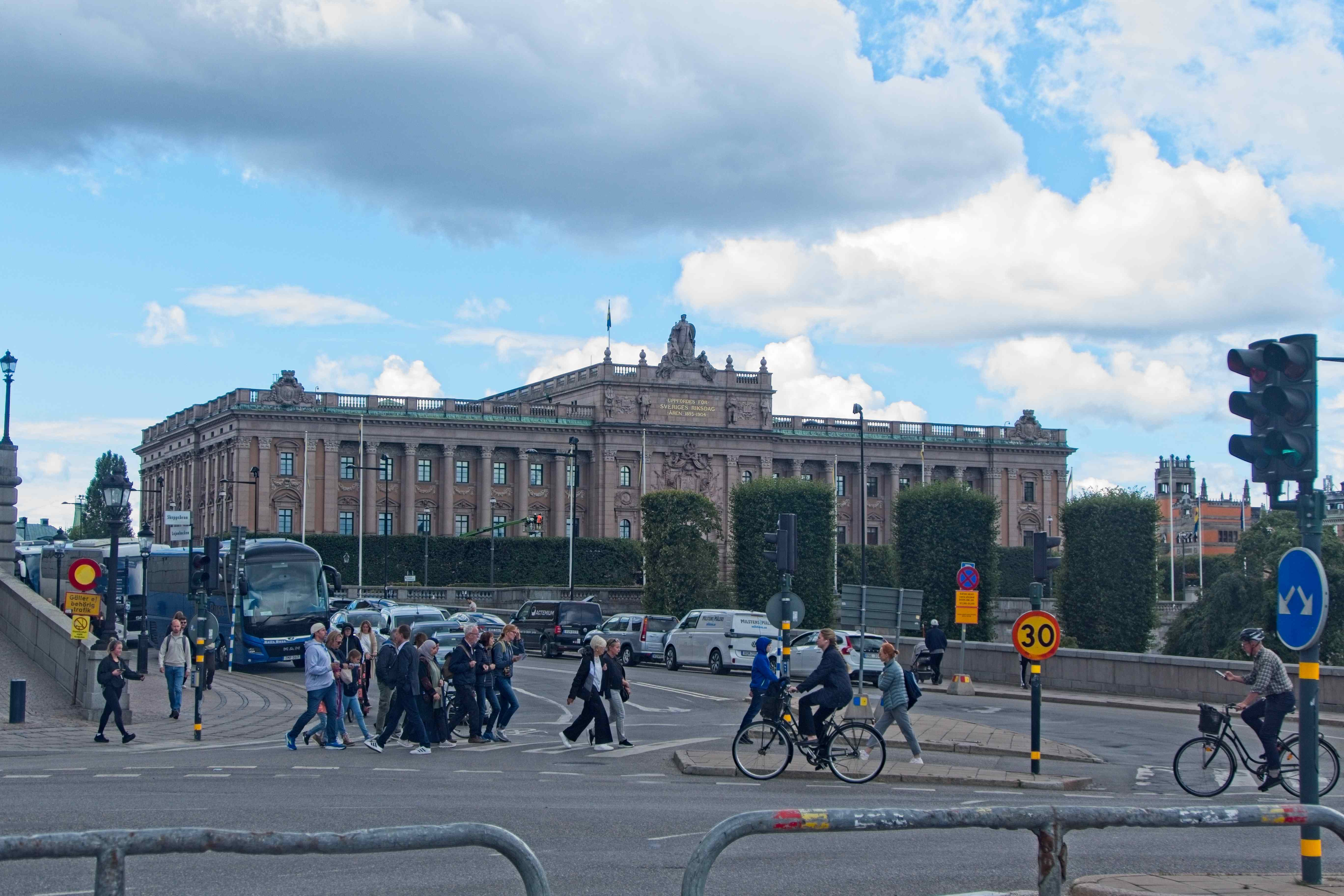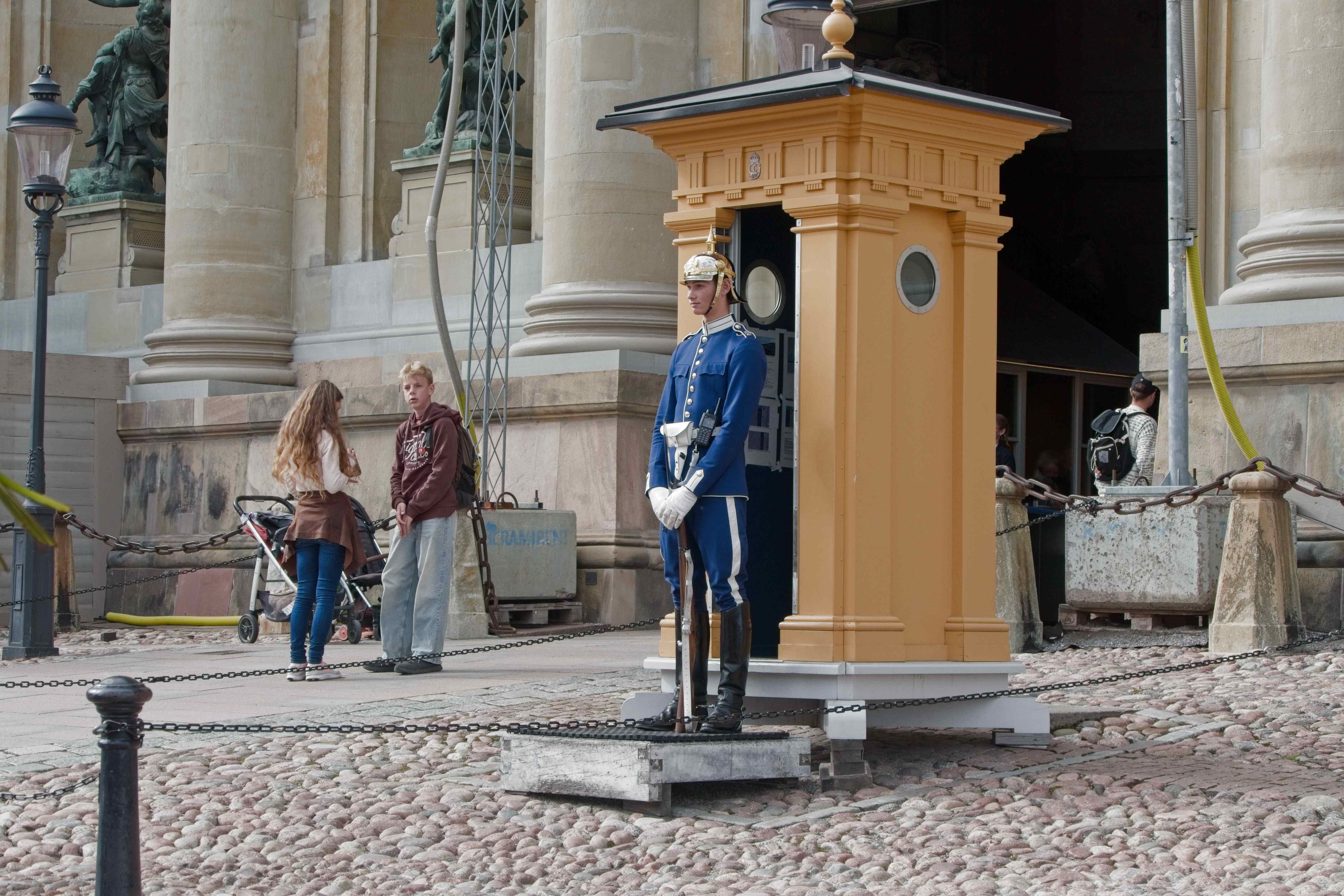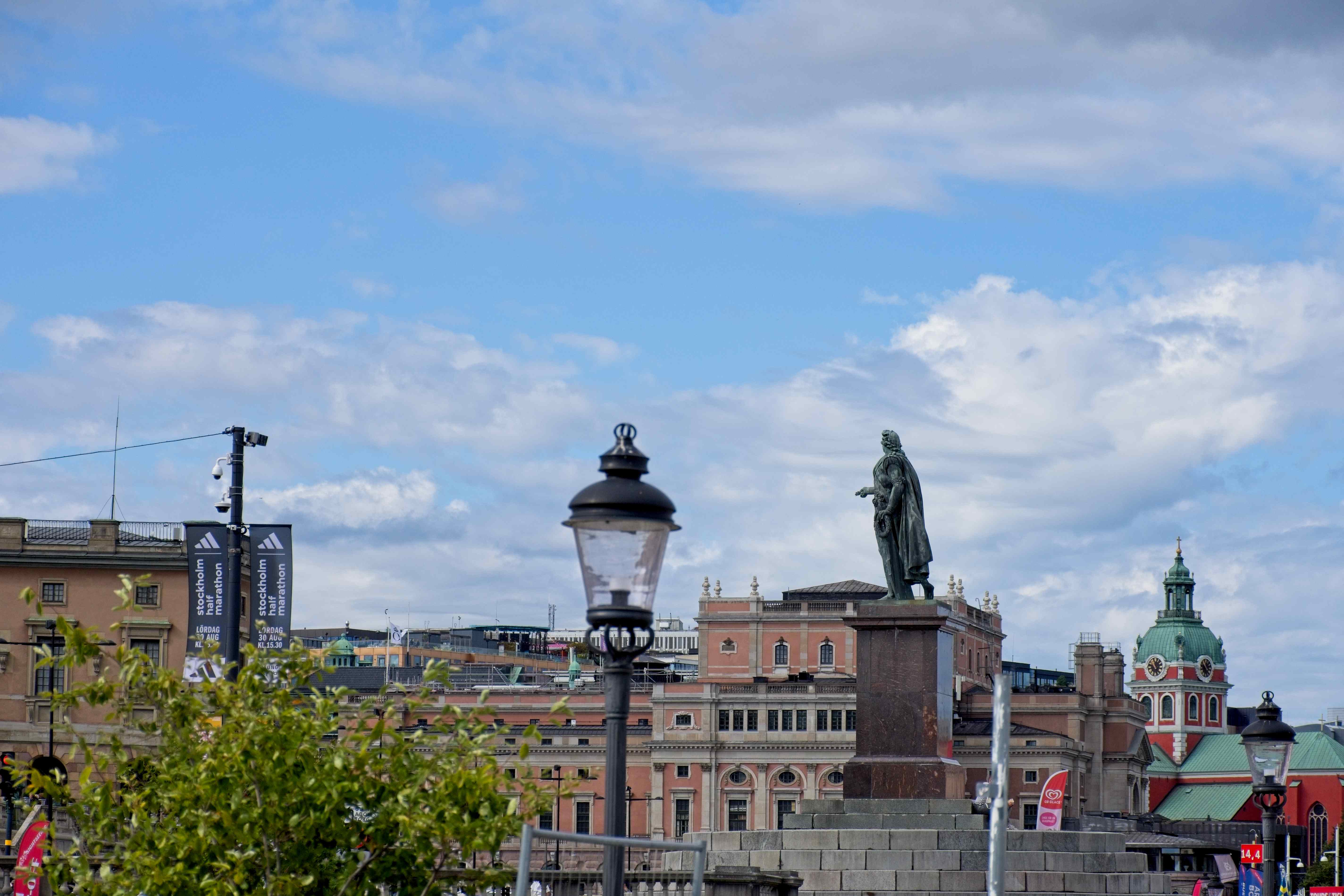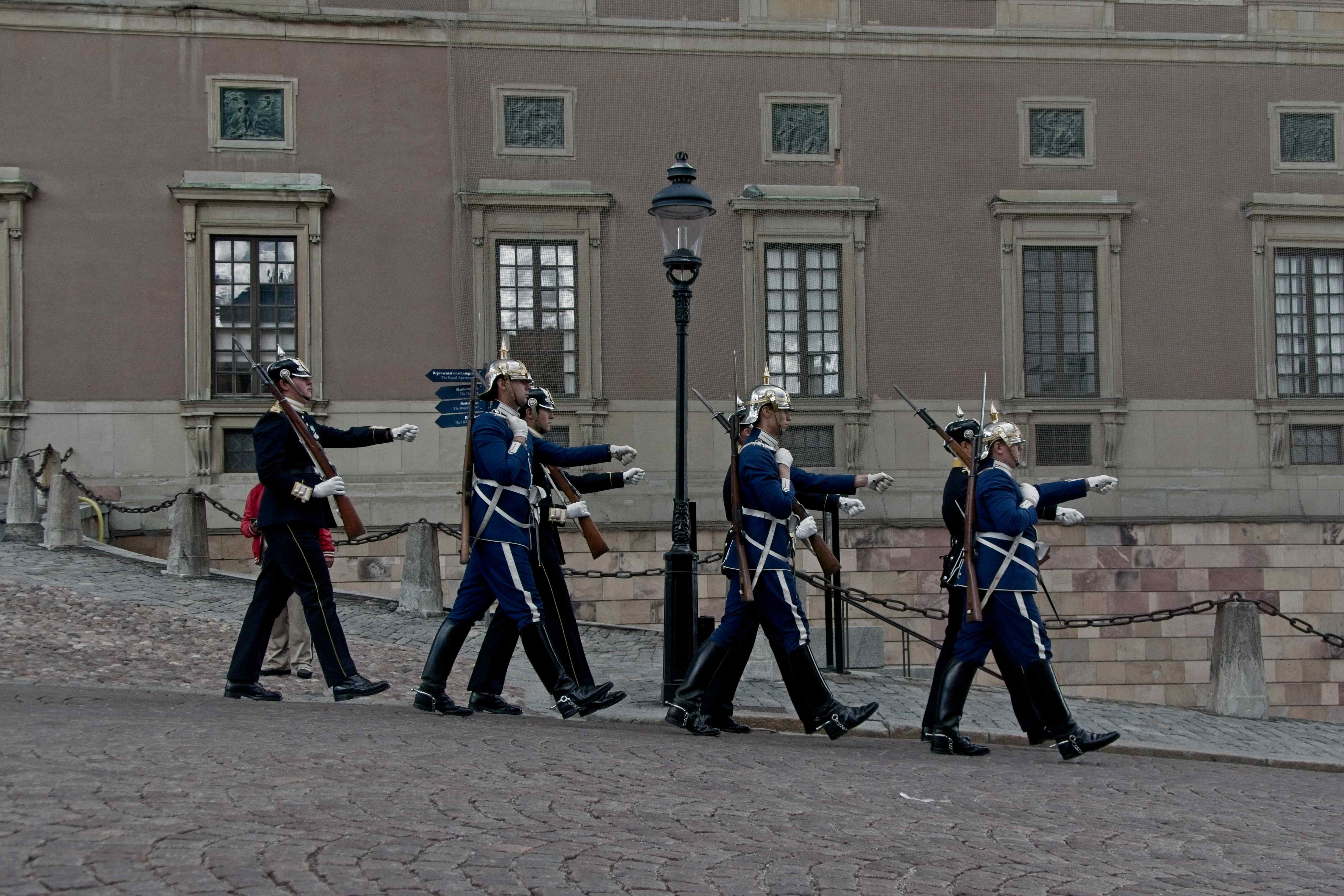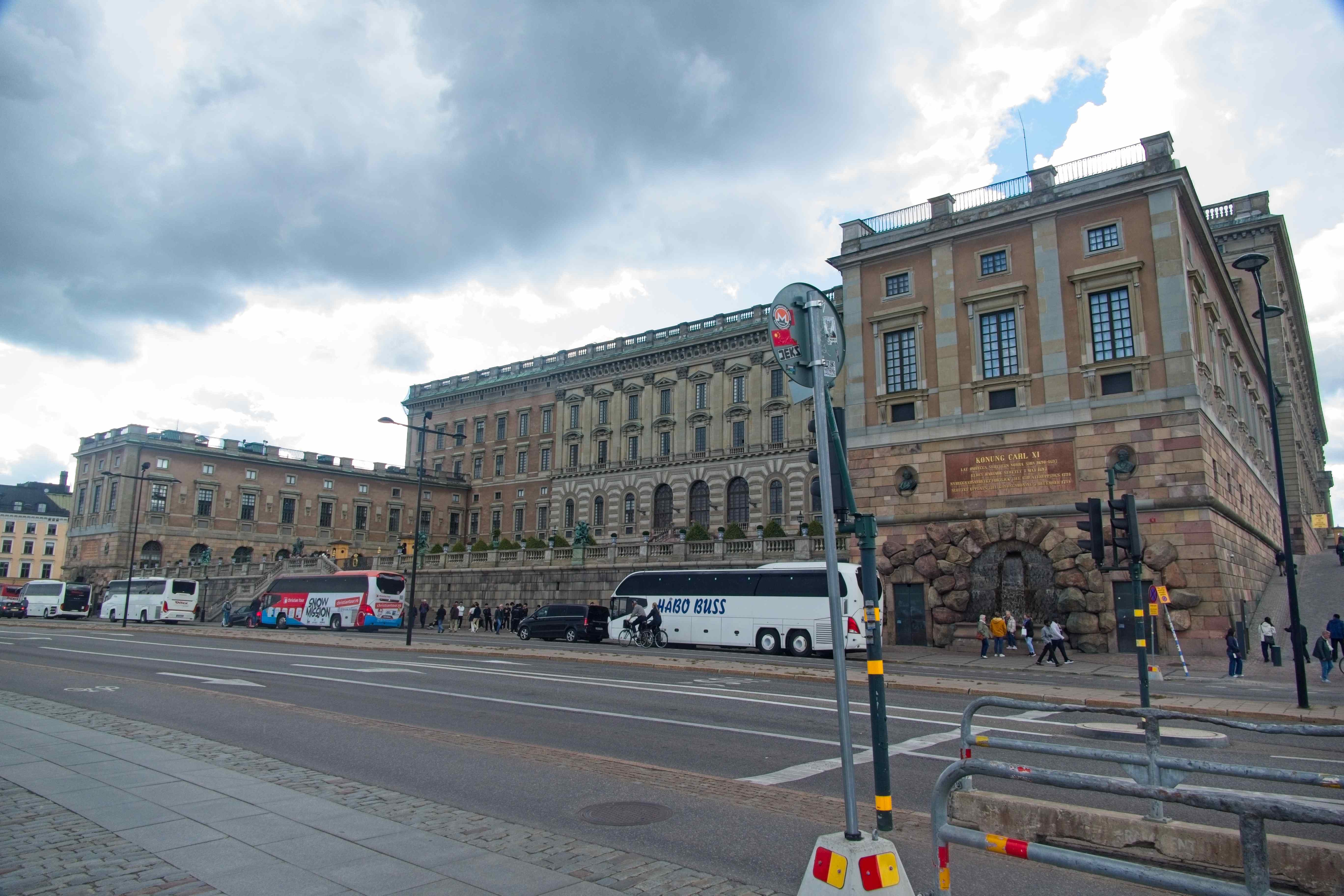 Der Platz ist relativ gut mit den öffentlichen Verkehrsmittel an die Stadt angeschlossen. Mit Bus und Tunnelbana kommt man in einer knappen Stunde mitten in die Stadt. Nach dem Zmorgen haben wir uns in die Stadt gewagt. In der Altstadt sind wir dann aus der U-Bahn ausgestiegen und losgestiefelt. Direkt in den touristischen Hotspot der Stadt. Souvenirlädeli jeglicher Art wechseln sich ab mit Kaffees, die mit "Swedish Fika" werben. Auch in der Altstadt befindet sich die engste Gasse von Stockholm. Ein Kaffee und etwas zu Essen wäre ansich keine schlechte Idee, aber wir haben kein Lokal entdeckt, dass uns anspricht. Darum sind wir weiter gegangen, bis wir beim Stockholmer Schloss waren. Dort haben wir gerade noch das Ende der Wachablösung gesehen.