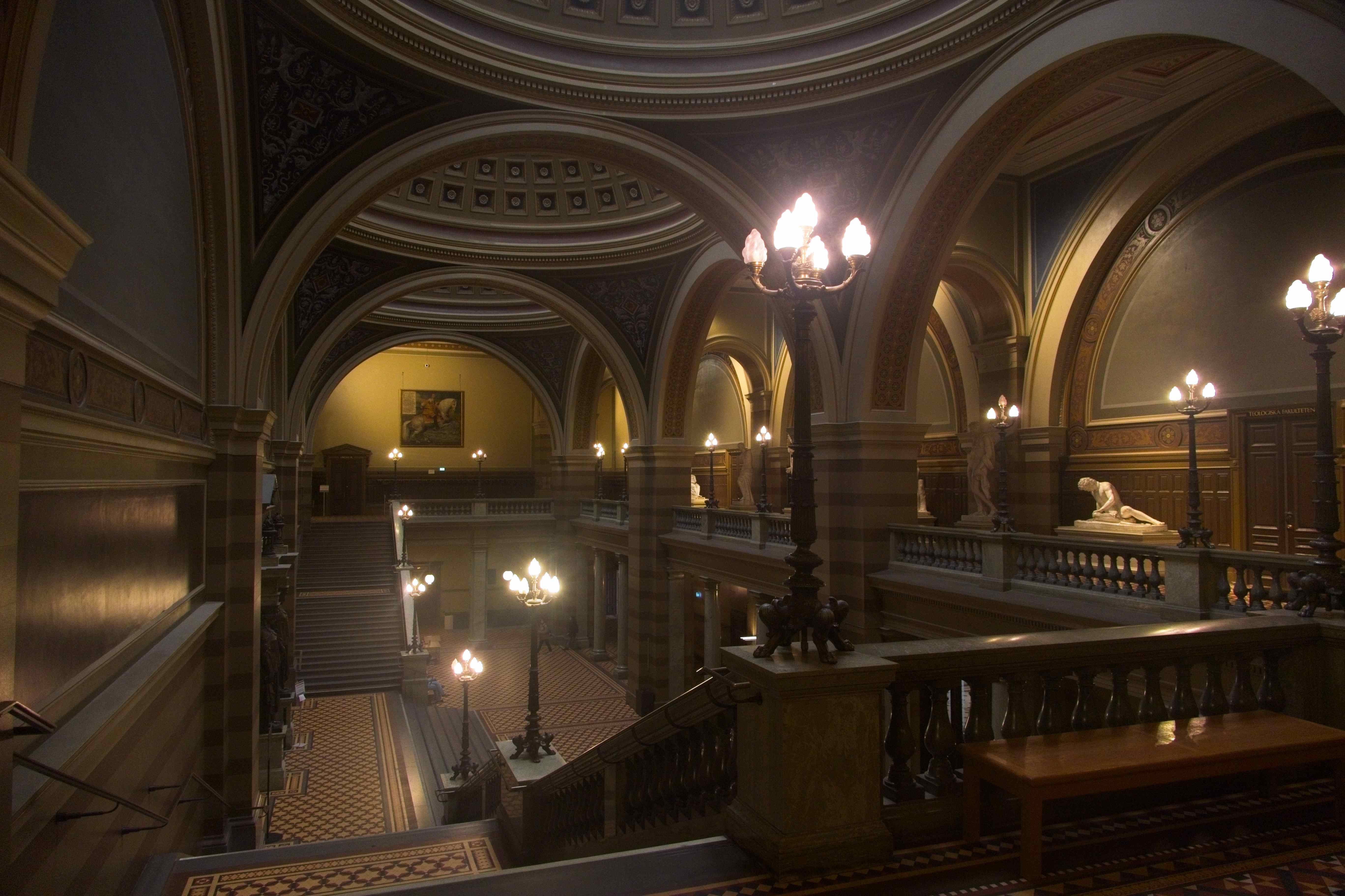 Die Universität Uppsala ist die älteste Uni Skandinaviens, sie wurde bereits 1477 gegründet. Nach unserem Besuch des Linnaeus-Garten sind wir zum Hauptgebäude der Uni spaziert. So wie es scheint, haben hier die Vorlesungen bereits wieder begonnen und die Tür zum Hauptgebäude war offen. Wir haben uns kurz hier umgesehen und das alte Gebäude bestaunt. Die Eingangshalle wirkt sehr dunkel, aber auch sehr elegant.