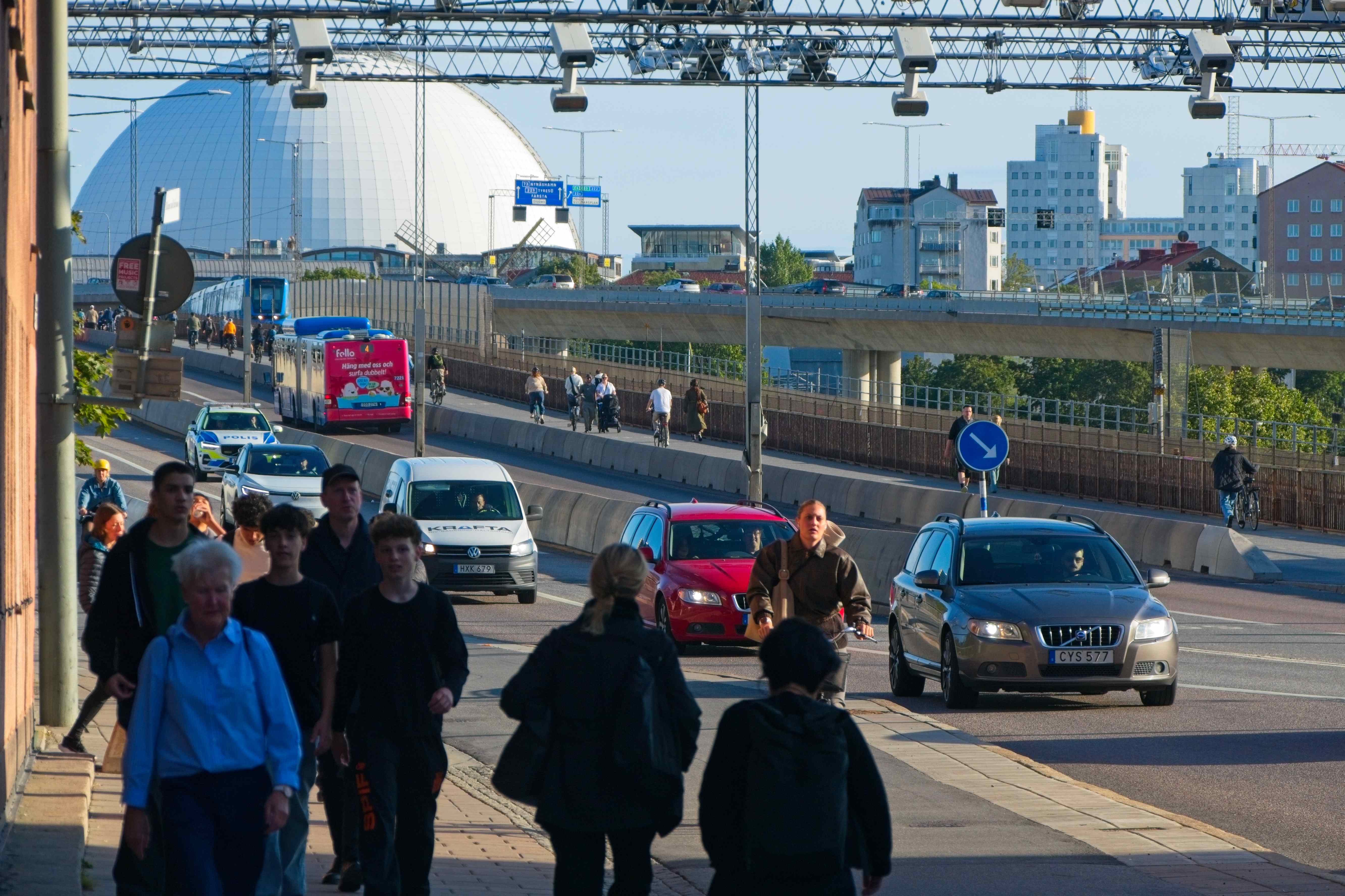 Stockholm ist eine Stadt mit vielen Gesichtern: Die touristische Altstadt, in der sich Souvenirladen an Souvenirladen reihen, der geschäftige Stadtteil mit vielen Büros um den Hauptbahnhof oder das hippe und moderne Viertel Södermalm mit vielen Kaffes, Vintage und Secondhand-Läden und Bars. Wir durften uns gestern Abend schon einen ersten Eindruck der Stadt verschaffen. Um zu dem Campingplatz zu kommen, auf dem wir nun die nächsten drei Nächte schlafen werden, mussten wir einmal quer durch die Stadt fahren. Und das genau während dem Feierabendverkehr. Die Strassen sind voll. Viele Taxis, die jede Minute gutmachen wollen. Busse, die ihren Fahrplan einhalten müssen. Fahrräder und Töffs, die sich die Lücken schnappen. Trotz Stau haben wir es gerade noch vor Rezeptions-Schluss zum Campingplatz geschafft und konnten einchecken.